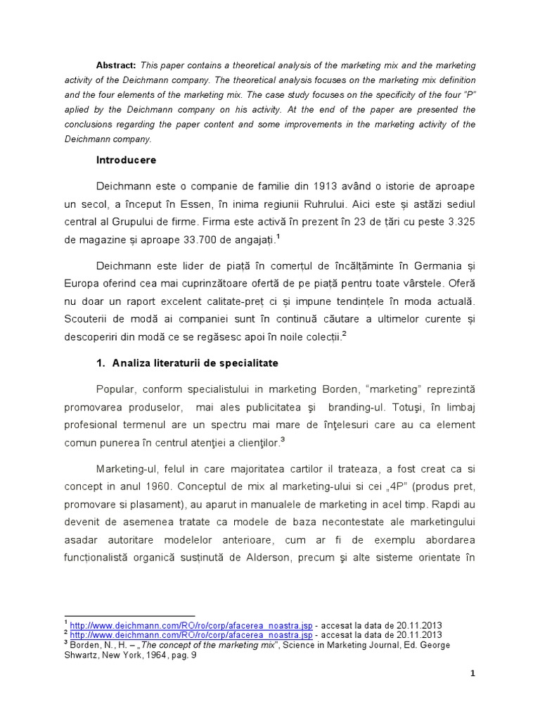 Referitor la mix-ul de marketing al firmei Deichmann, acesta este ntr-o