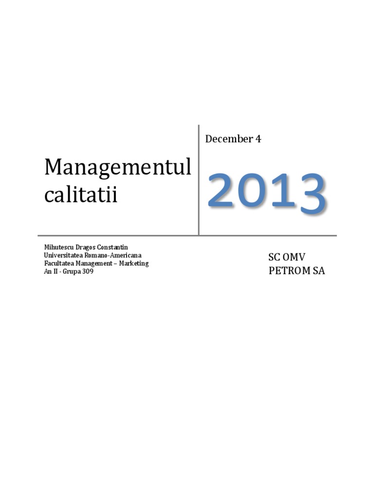 5. Abordarea sistemului de calitate ca proces managerial ....................................................................... 2