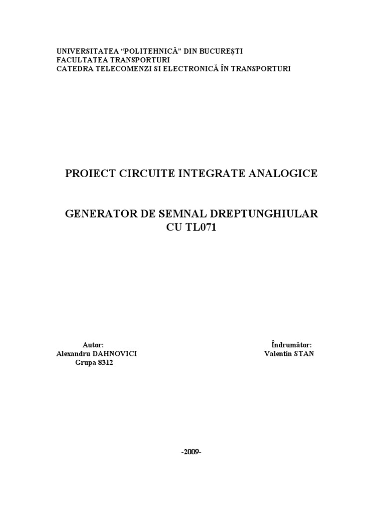 PROIECT CIRCUITE INTEGRATE ANALOGICE