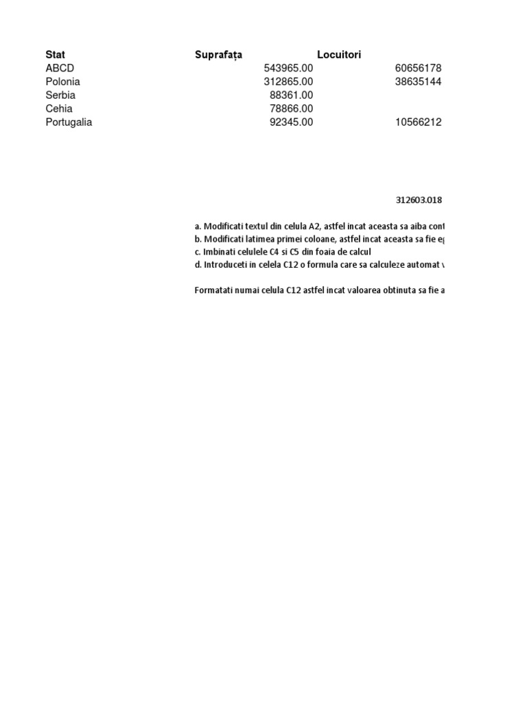 Formatati numai celula C12 astfel incat valoarea obtinuta sa fie afisata cu trei zecimale