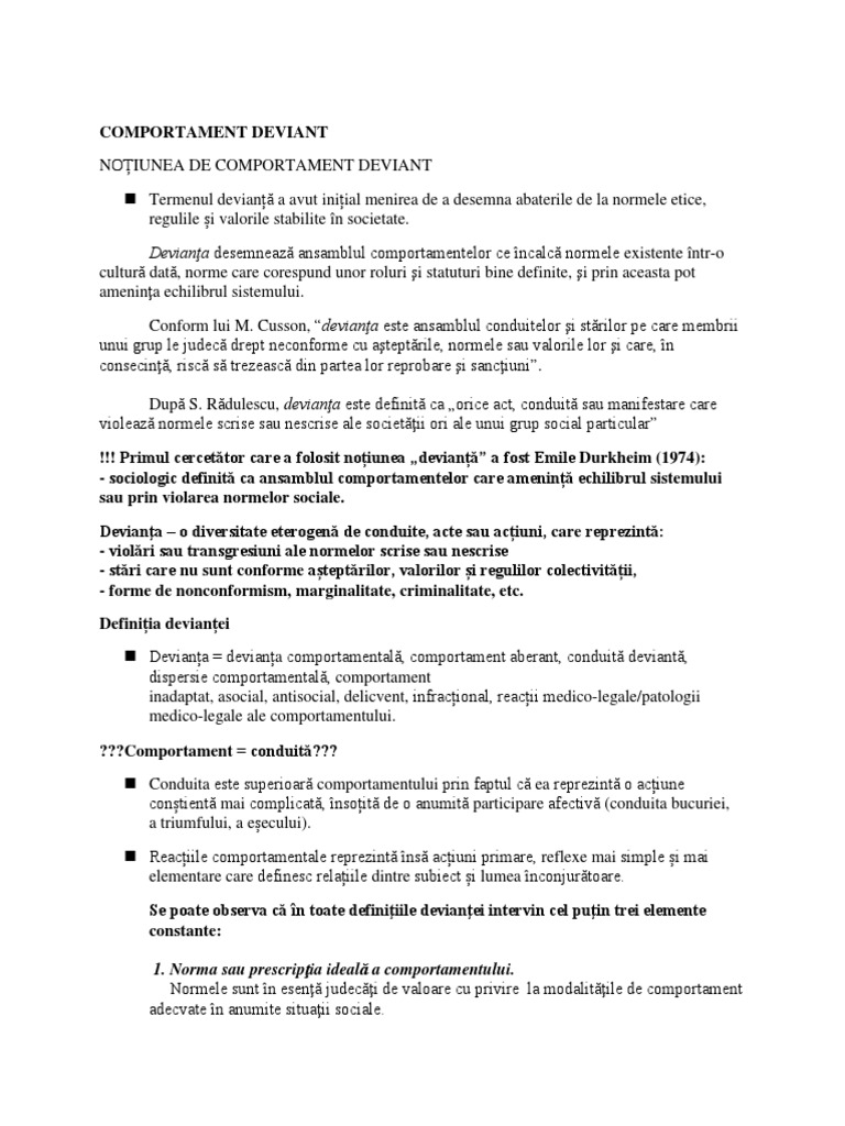 NOIUNEA DE COMPORTAMENT DEVIANT