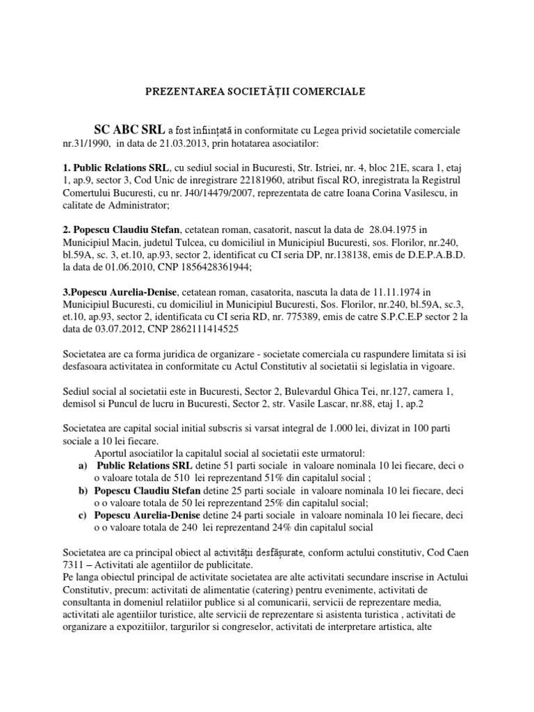 SC ABC SRL a fost nfiinat in conformitate cu Legea privid societatile comerciale
