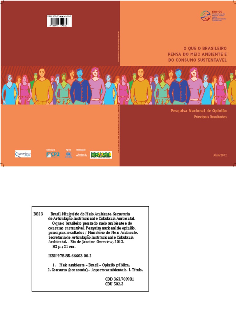 Brasil. Ministério do Meio Ambiente. Secretaria de Articulação Institucional e Cidadania Ambiental. O que o brasileiro pensa do meio ambiente e do consumo sustentável: Pesquisa nacional de opinião: