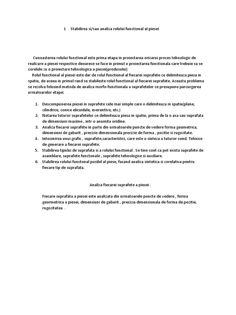 1 Stabilirea si/sau analiza rolului functional al piesei