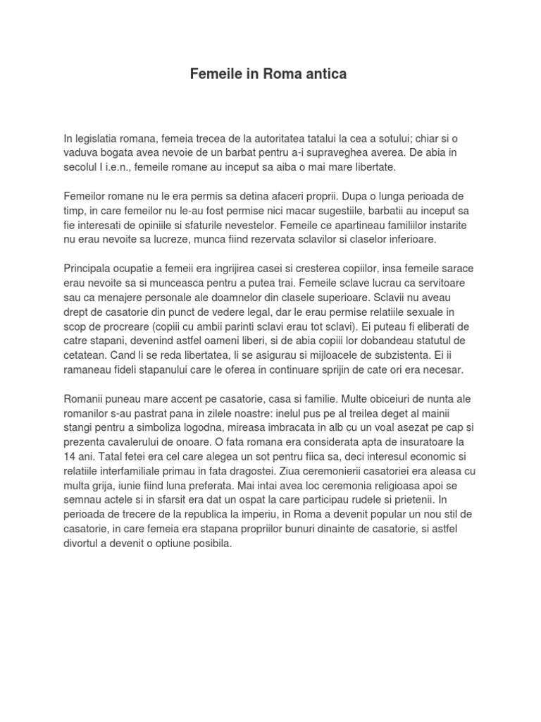 secolul I i.e.n., femeile romane au inceput sa aiba o mai mare libertate.