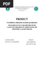Trasabilitatea parametrilor de calitate urmariti in tehnologia de obtinere a