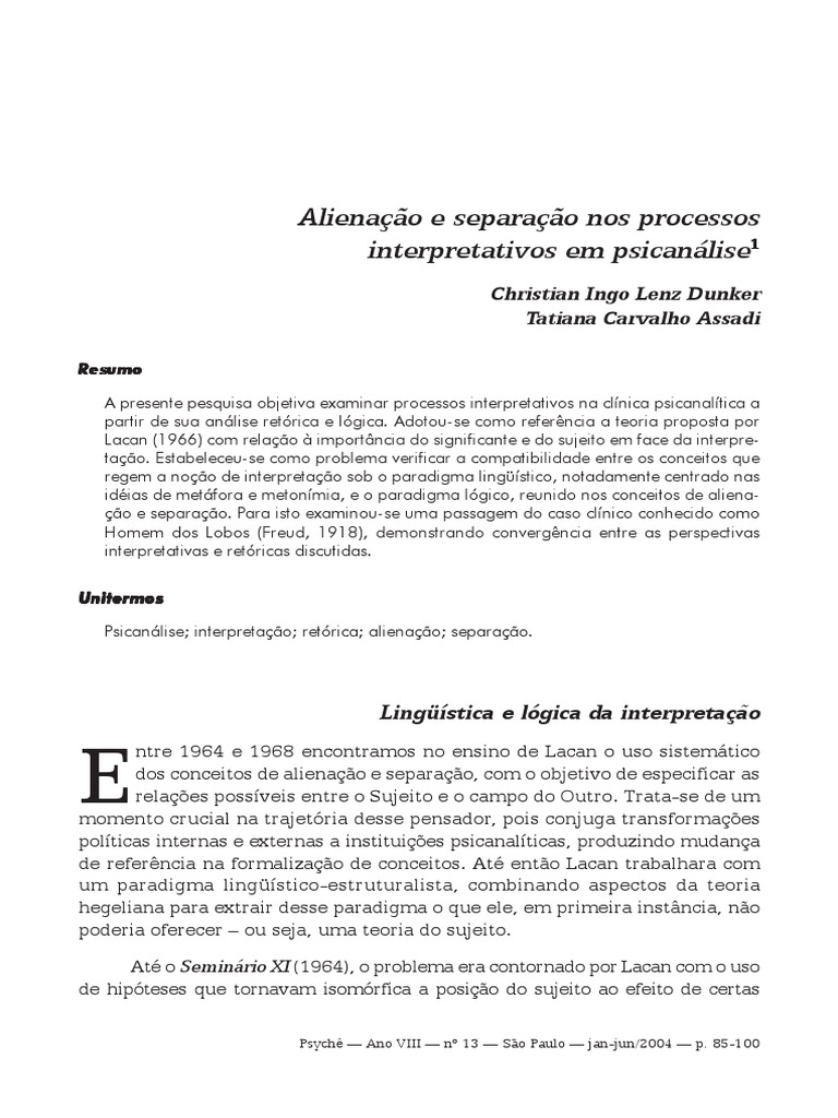 Alienao e separao nos processos interpretativos em psicanlise | 87