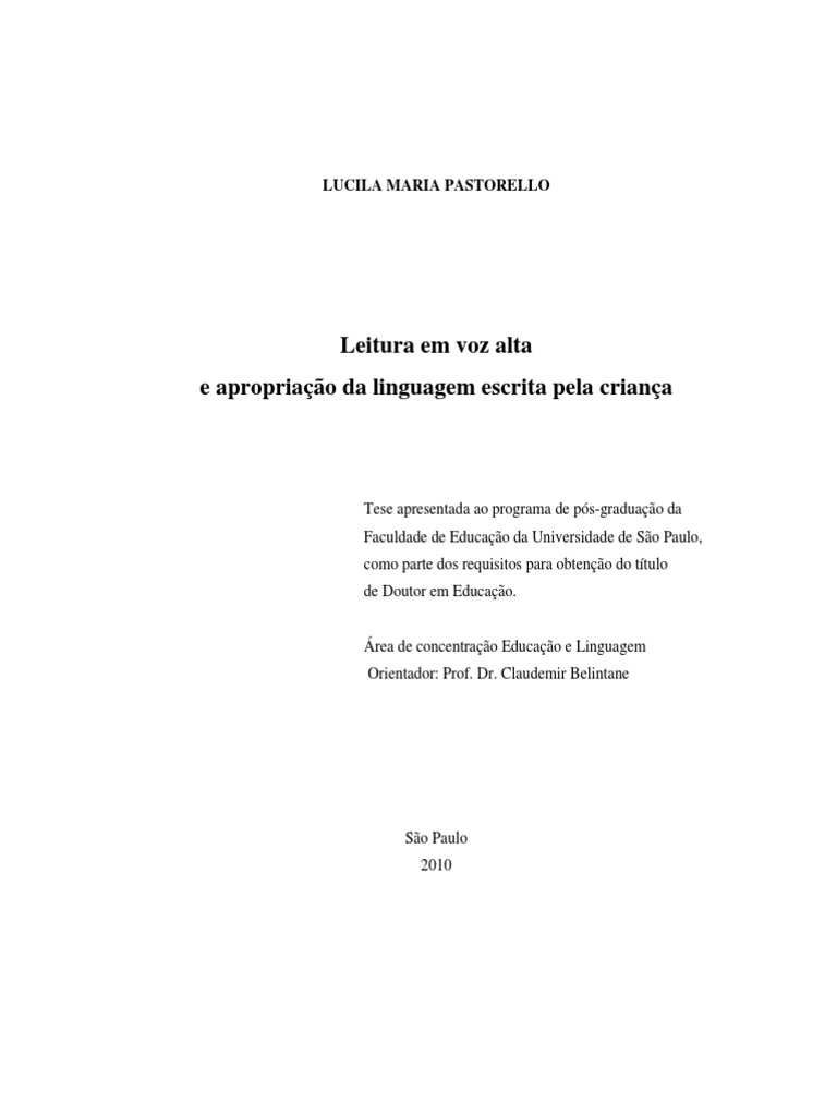 PASTORELLO, L.M. Leitura em voz alta e apropriao da linguagem escrita pela