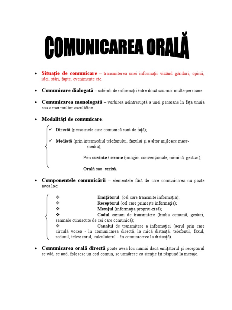 • Comunicarea orală directă poate avea loc numai dacă emiţătorul şi receptorul