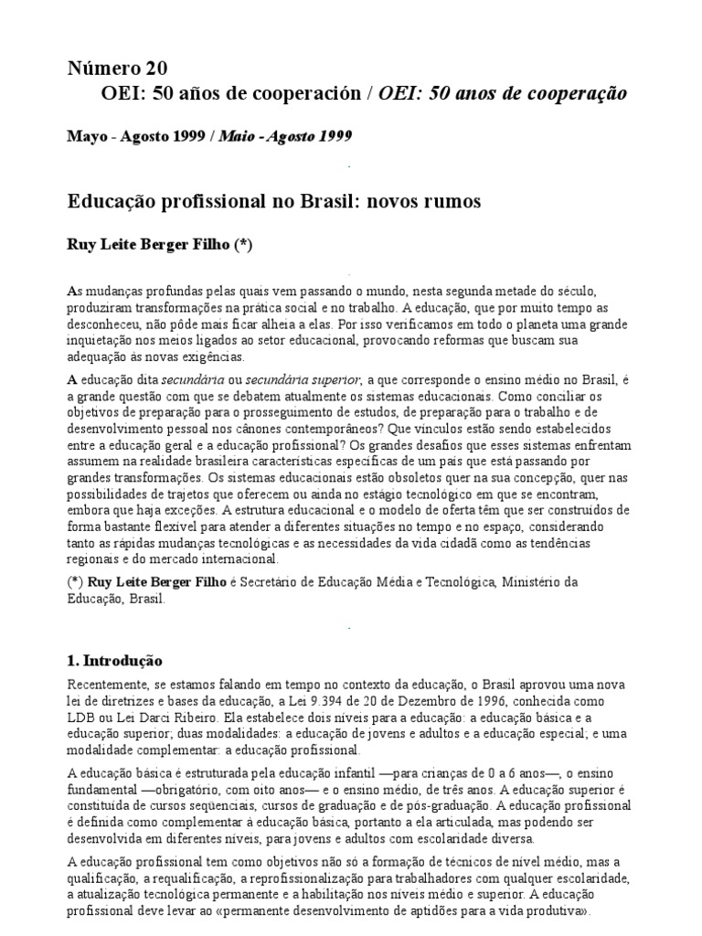 (*) Ruy Leite Berger Filho é Secretário de Educação Média e Tecnológica, Ministério da
