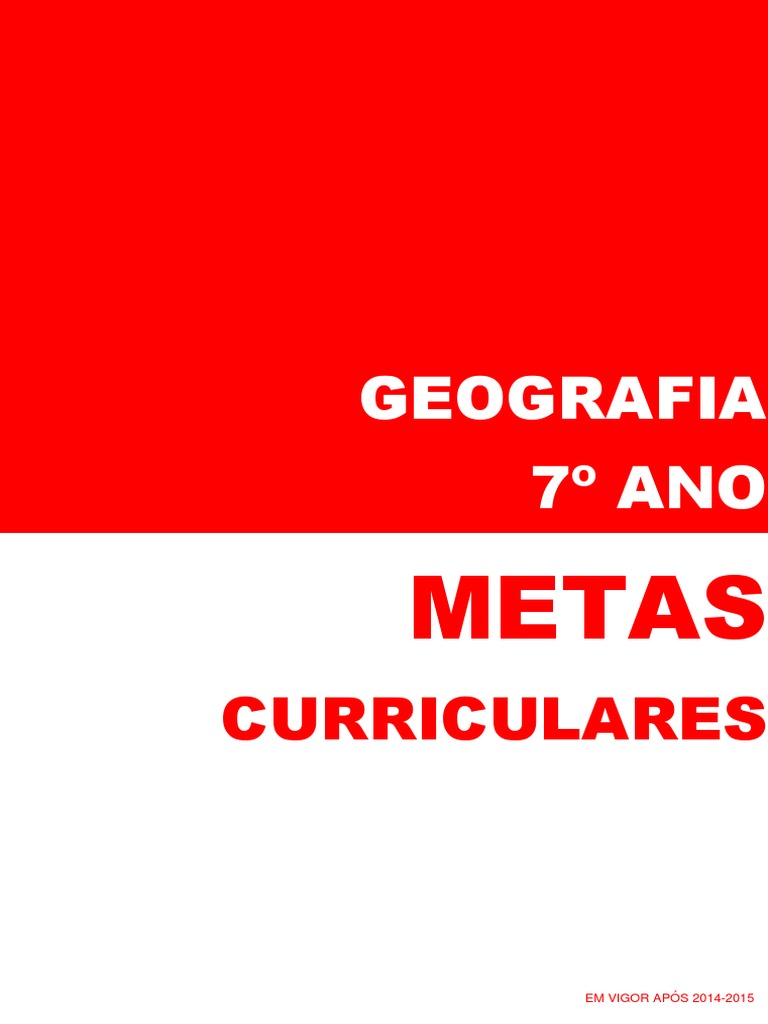 NOTA: As Metas Curriculares de Geografia para o 7 Ano entram em vigor no ano