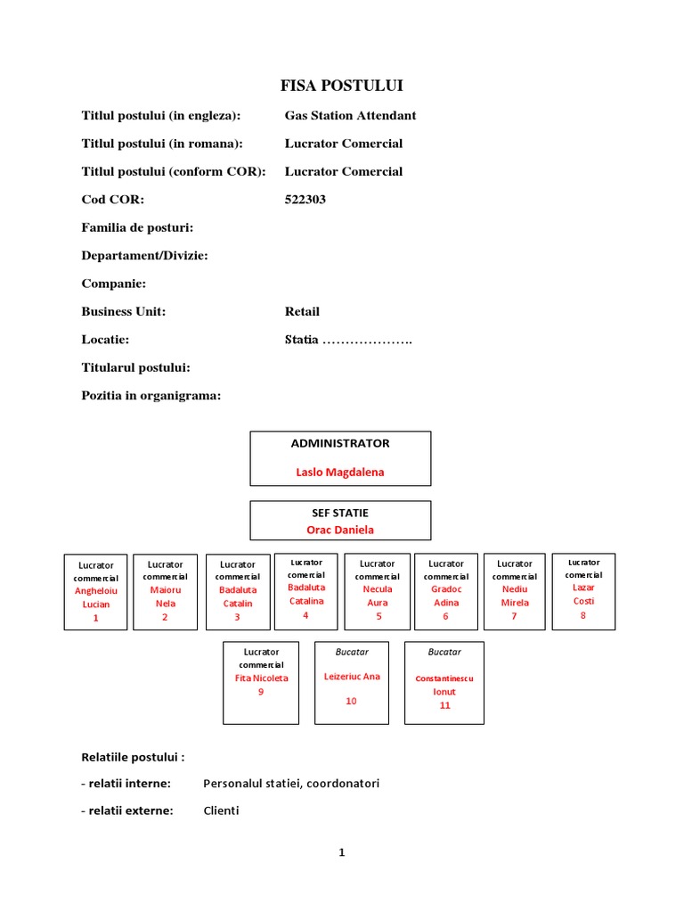 Titlul postului (conform COR): Lucrator Comercial