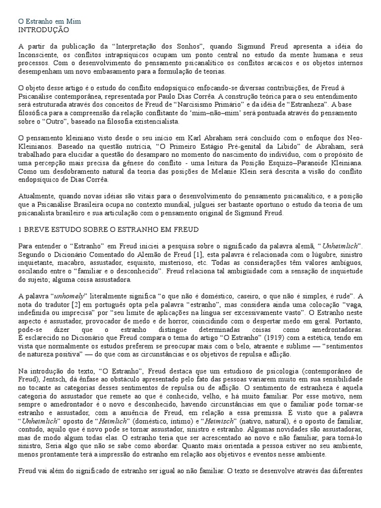 &reud ,ai al'm do si%ni(icado de estranho ser i%ual ao no (amiliar* O te:to se desen,ol,e atra,'s das di(erentes