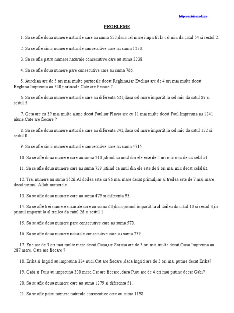 20. Sa se afle doua numere care au suma 127& si diferenta 51.