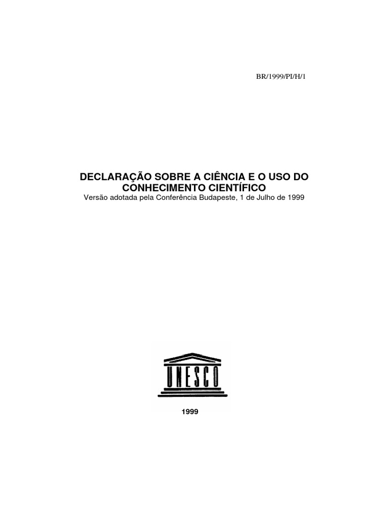 Declarao sobre a Cincia e o Uso do Conhecimento Cientfico, e a sustentar as