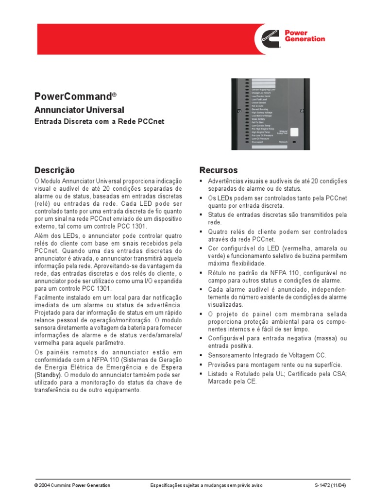 2004 Cummins Power Generation Especificaes sujeitas a mudanas sem prvio aviso S-1472 (11/04)