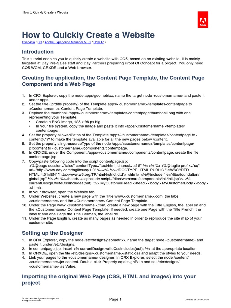 This tutorial enables you to quickly create a website with CQ5, based on an existing website. It is mainly