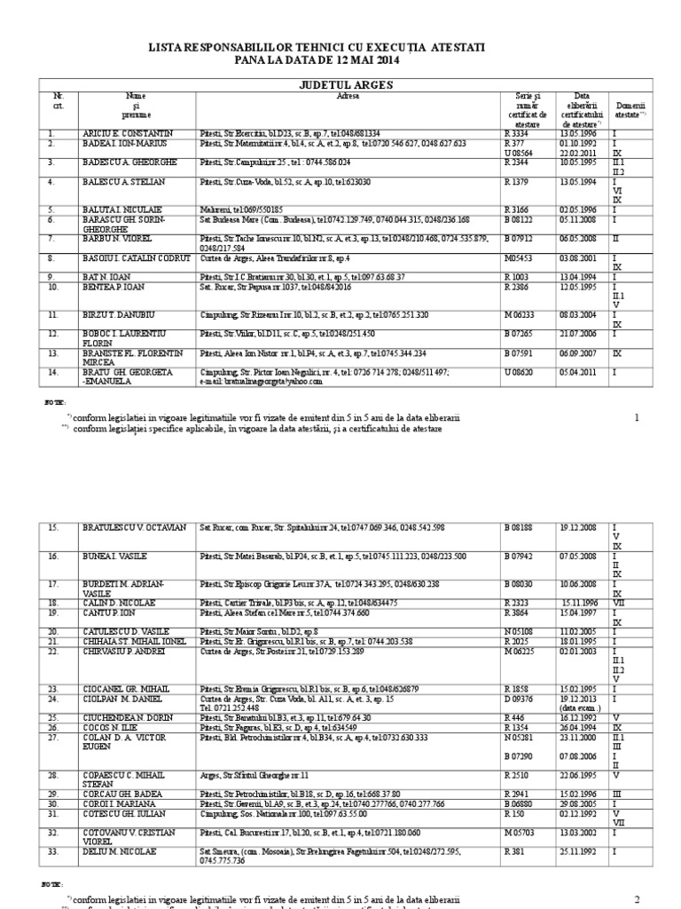 LISTA RESPONSABILILOR TEHNICI CU EXECUIA ATESTATI