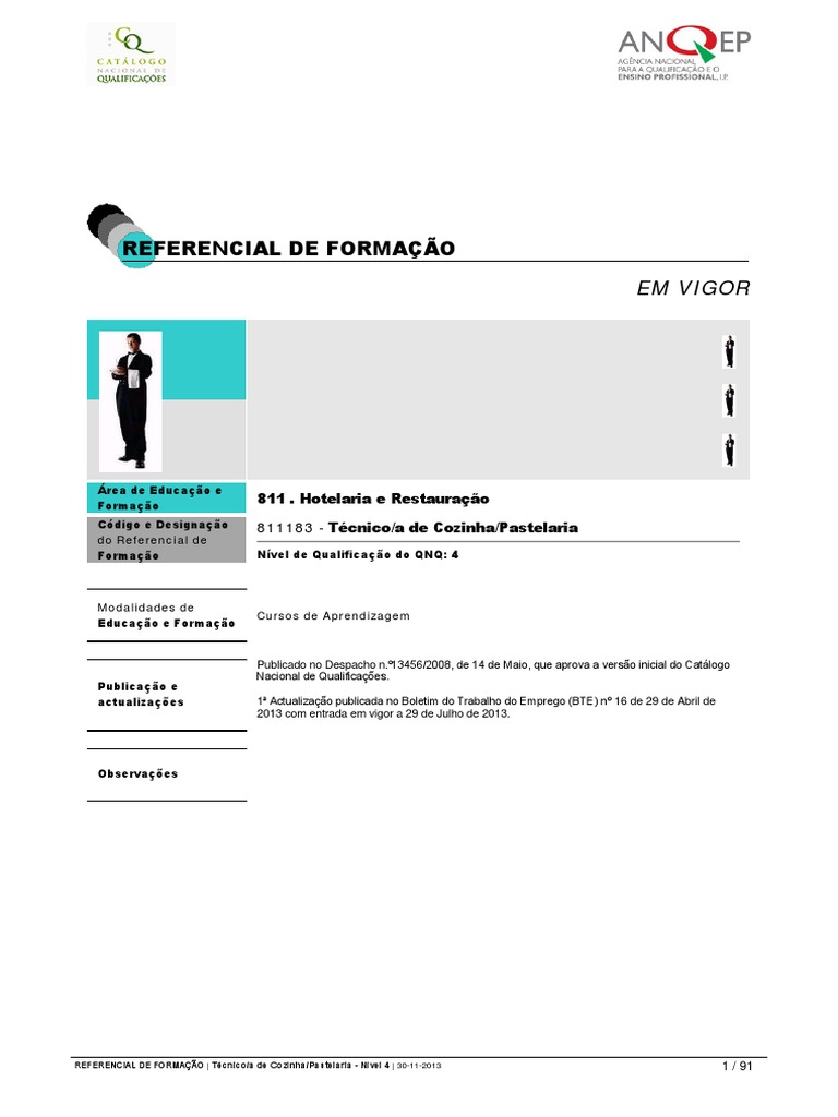 REFERENCIALDEFORMAO | Tcnico/adeCozinha/Pastelaria- Nvel4 | 30-11-2013