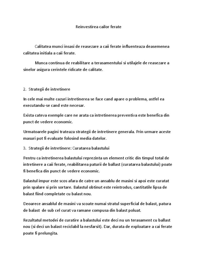 nou (si deci un balast reciclabil la nesfarsit). Dar, durata de exploatare a cai ferate