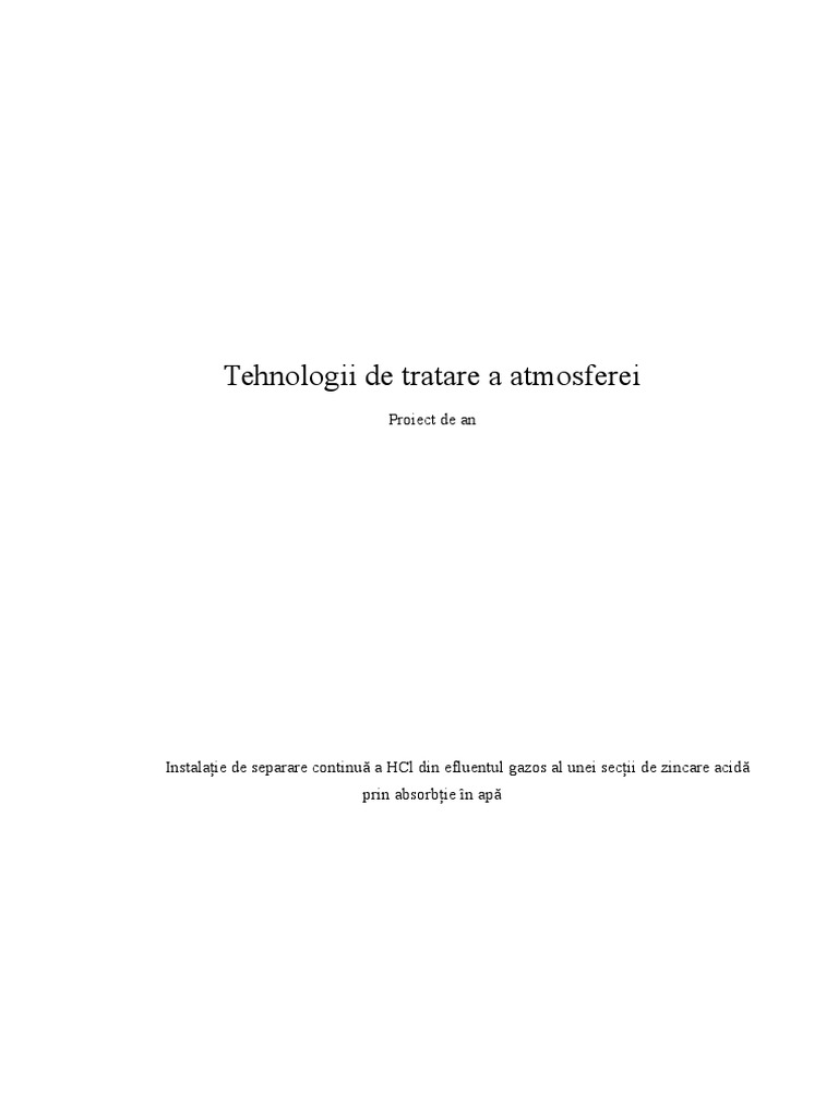 Proiectul de tehnologii de protecie a atmosferei are ca tem de proiectare o instalaie de
