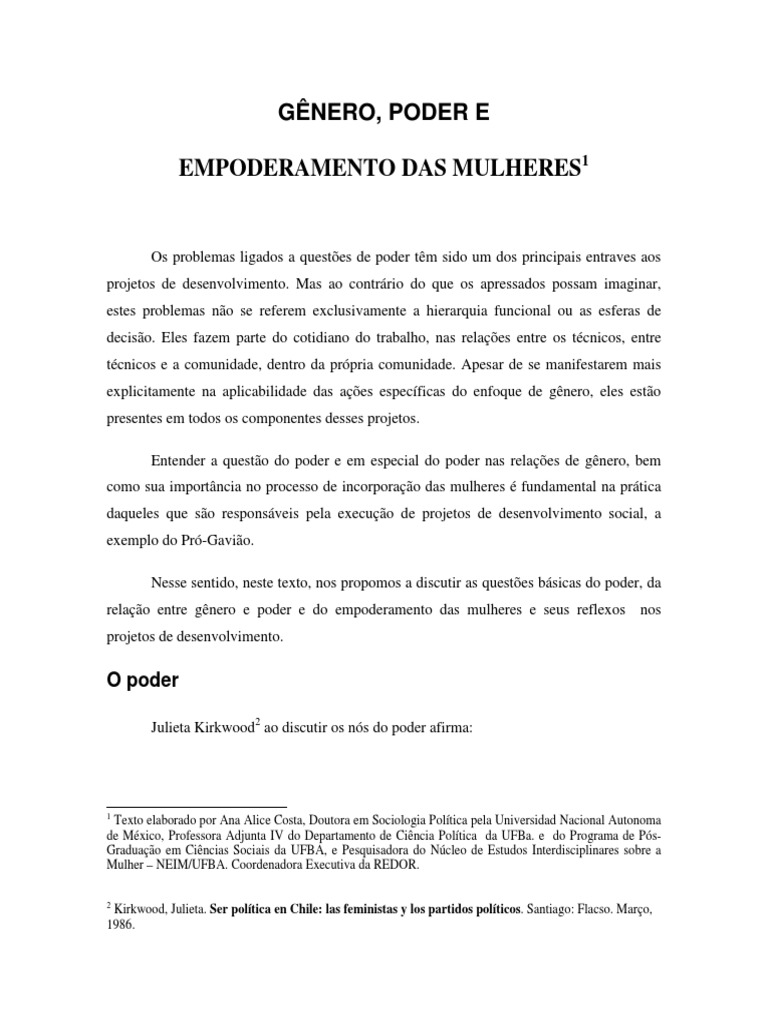 relao entre gnero e poder e do empoderamento das mulheres e seus reflexos nos