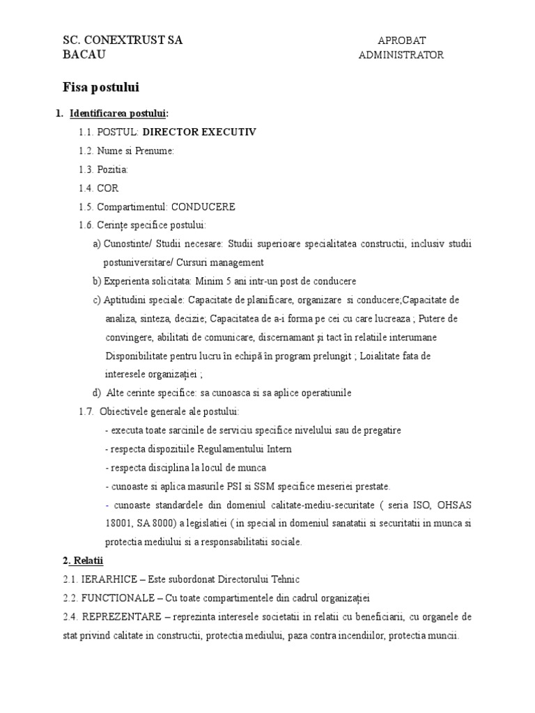 1.1. POSTUL: DIRECTOR EXECUTIV