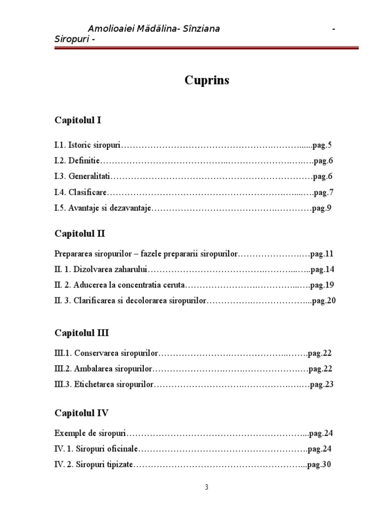 IV. 2. Siropuri tipizate...pag.30