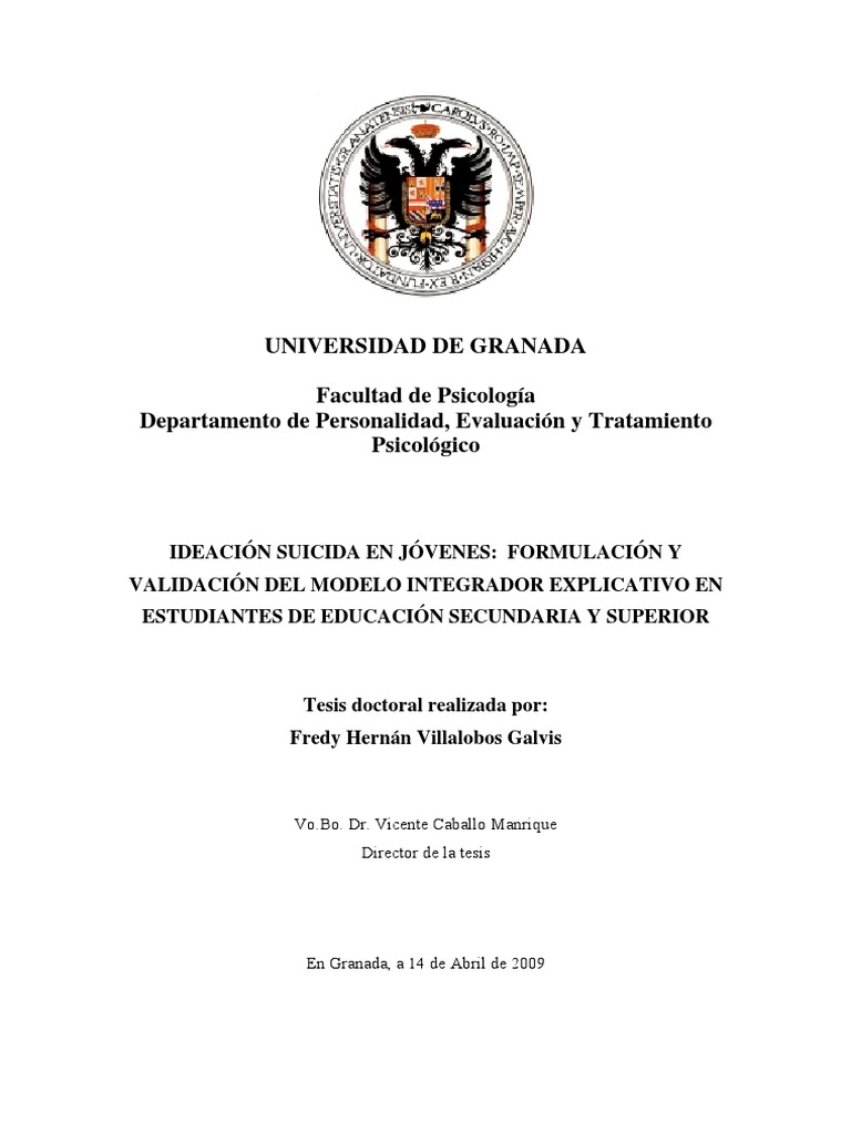 modelo explicativo de la ideacin y el intento suicidas en poblacin escolarizada en los niveles de