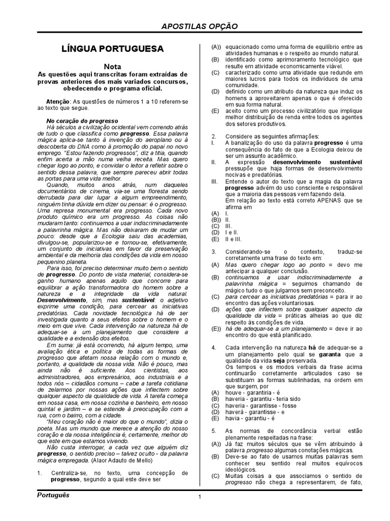Ateno: As questes de nmeros 1 a 10 referem-se