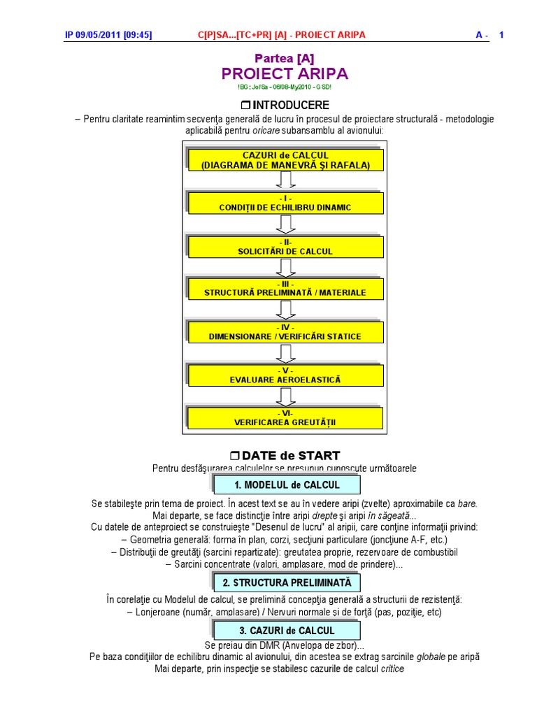 Se stabilete prin tema de proiect. n acest text se au n vedere aripi (zvelte) aproximabile ca bare.