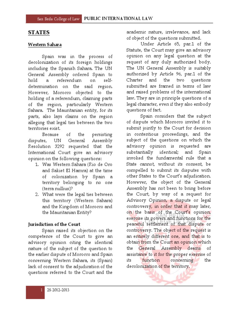 Question I. Was Western Sahara at the