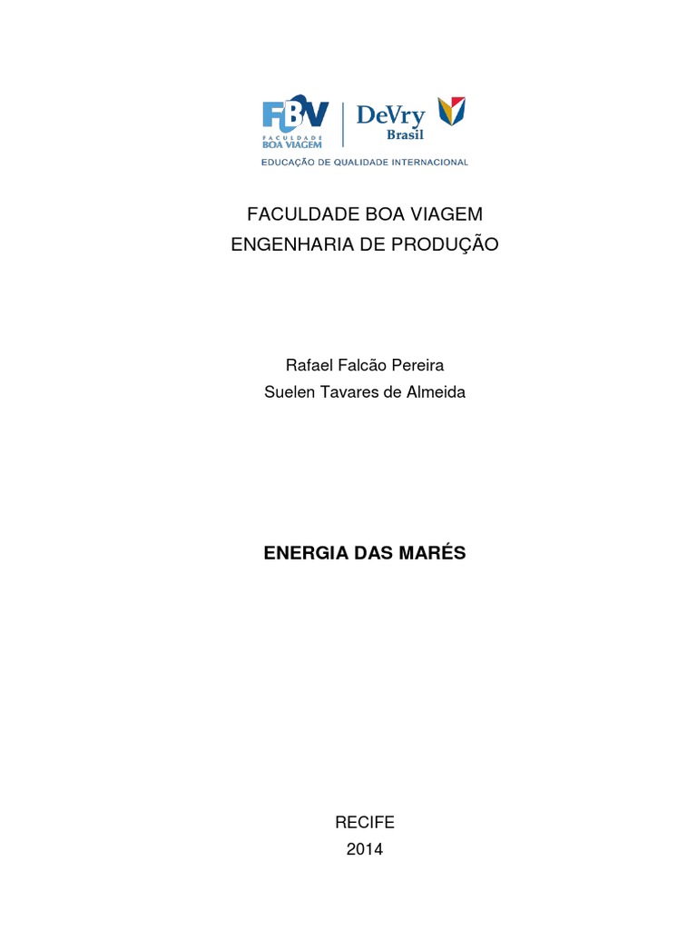 No trabalho que aqui ser apresentado, falaremos da energia das mars.