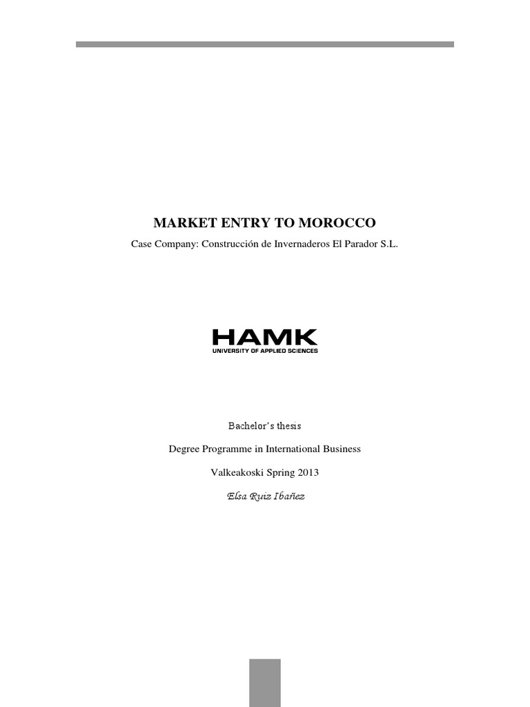 Market Entry to Morocco Construccin de Invernaderos El Parador S.L.