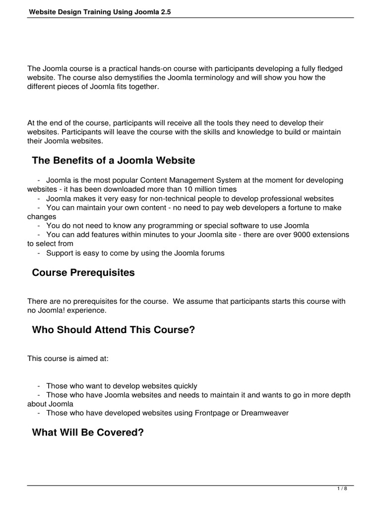 Website Design Training Using Joomla 2.5