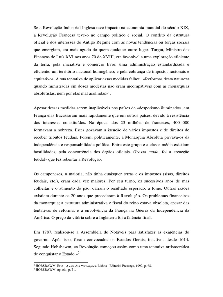HOBSBAWM, Eric A Era das Revolues. Lisboa : Editorial Presena, 1992. p. 68.