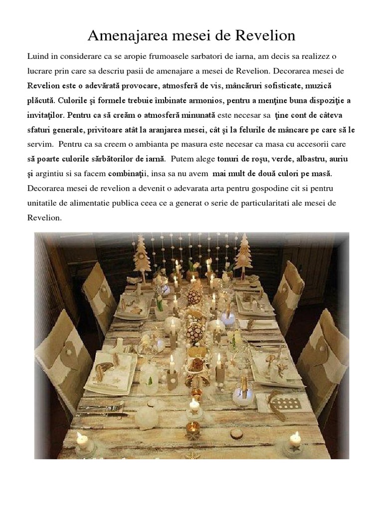 lucrare prin care sa descriu pasii de amenajare a mesei de Revelion. Decorarea mesei de