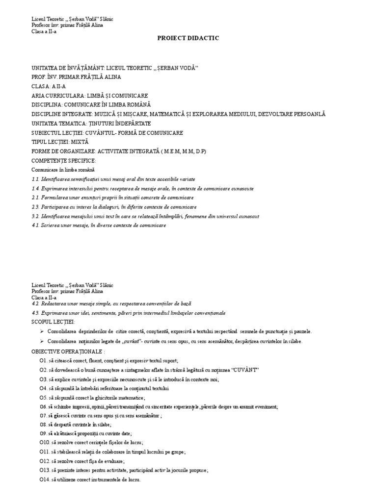 PROIECT DIDACTIC