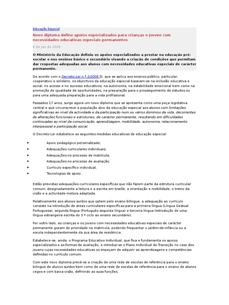 Este novo diploma apresenta-se como mais um passo na promoo da incluso educativa em
