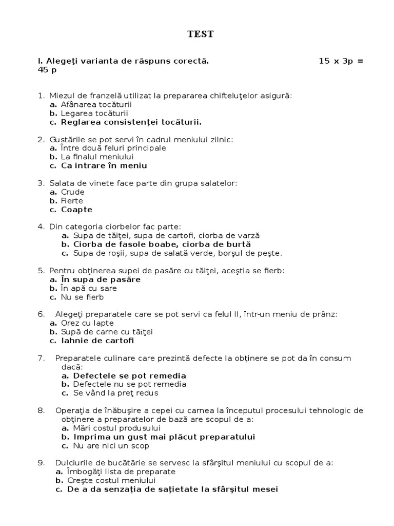 I. Alegei varianta de rspuns corect.