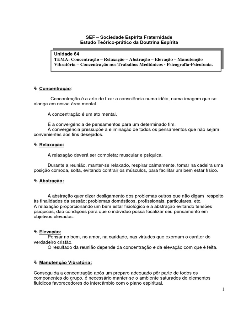 Vibratria Concentrao nos Trabalhos Medinicos - Psicografia-Psicofonia.