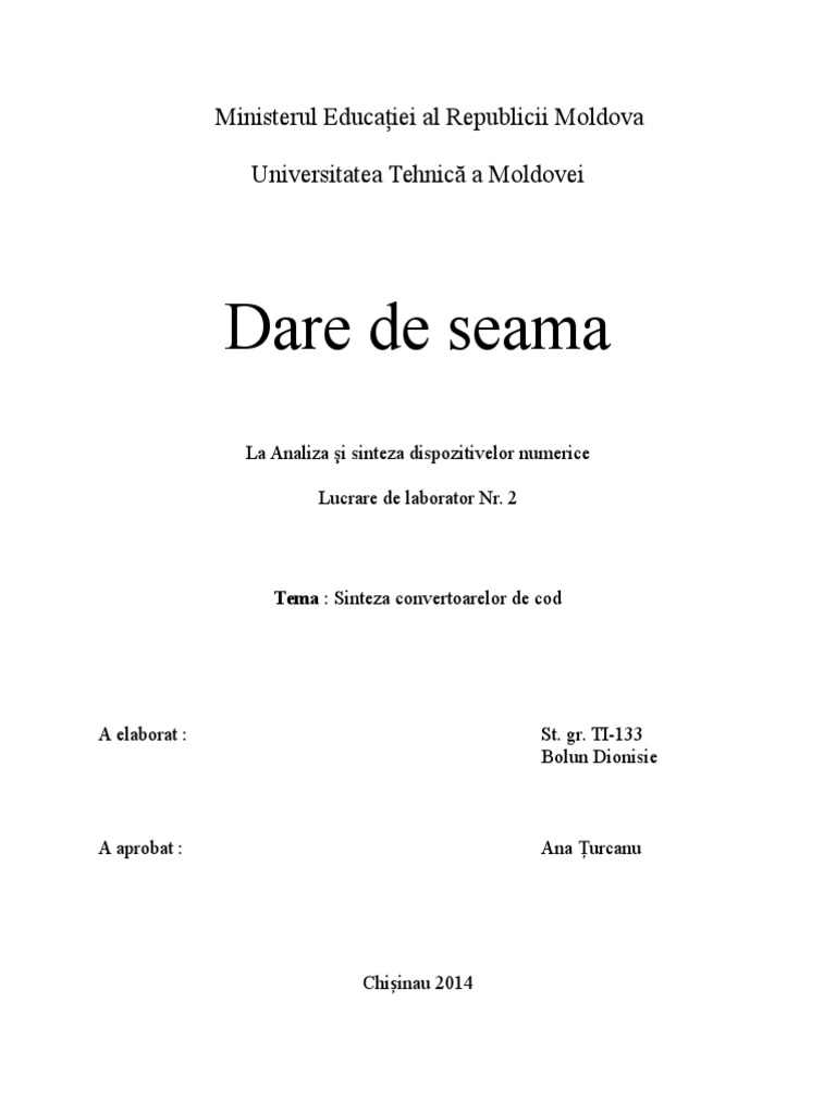 Studierea practica a metodelor de sinteza a convertoarelor de cod.
