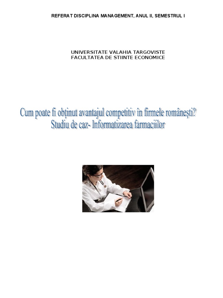 REFERAT DISCIPLINA MANAGEMENT, ANUL II, SEMESTRUL I