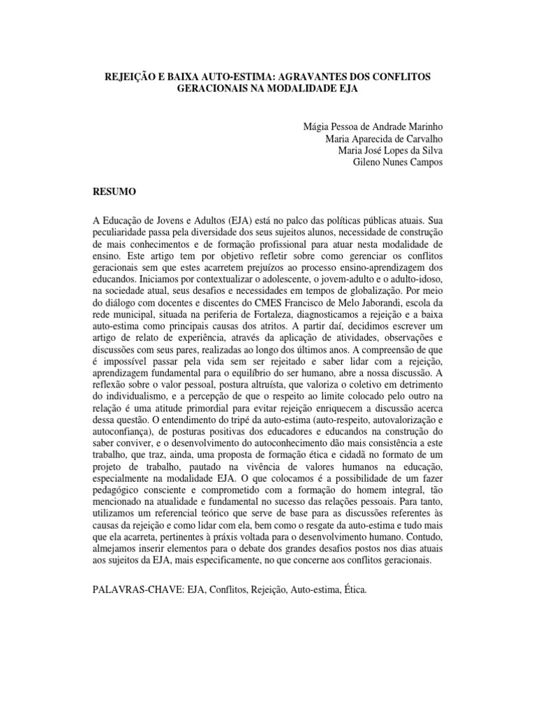 educao na atualidade. Saber lidar com a rejeio e a baixa auto-estima uma