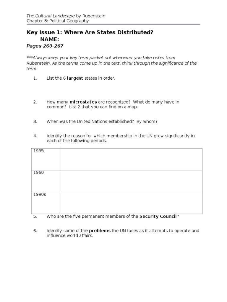 Rubenstein. As the terms come up in the text, think through the significance of the