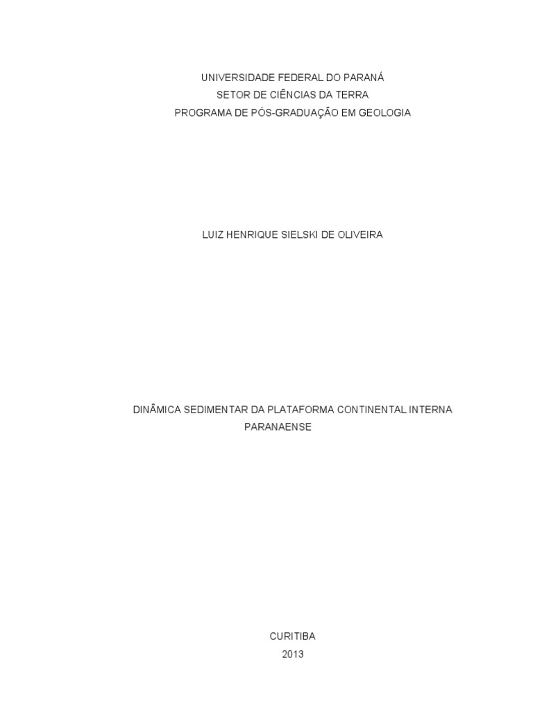 DINÂMICA SEDIMENTAR DA PLATAFORMA CONTINENTAL INTERNA PARANAENSE