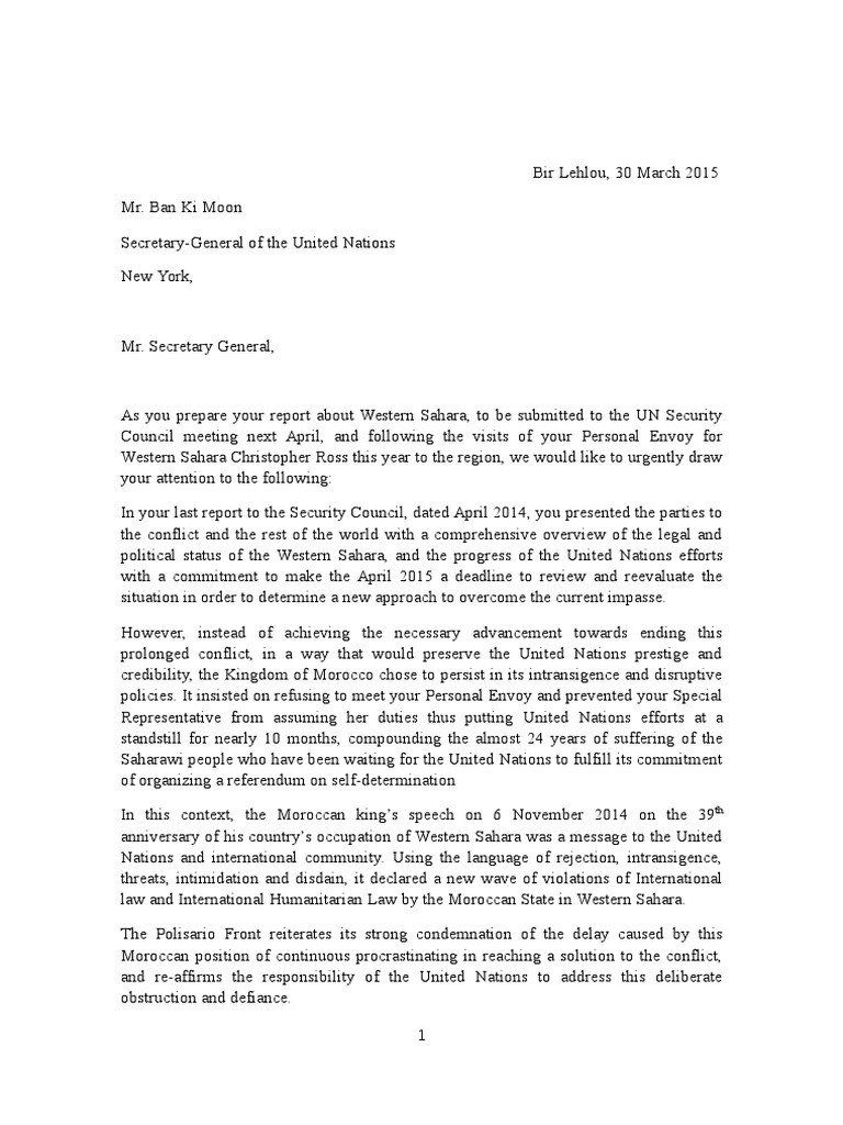 committed by the Moroccan occupying power. In this regard, we also call on you to