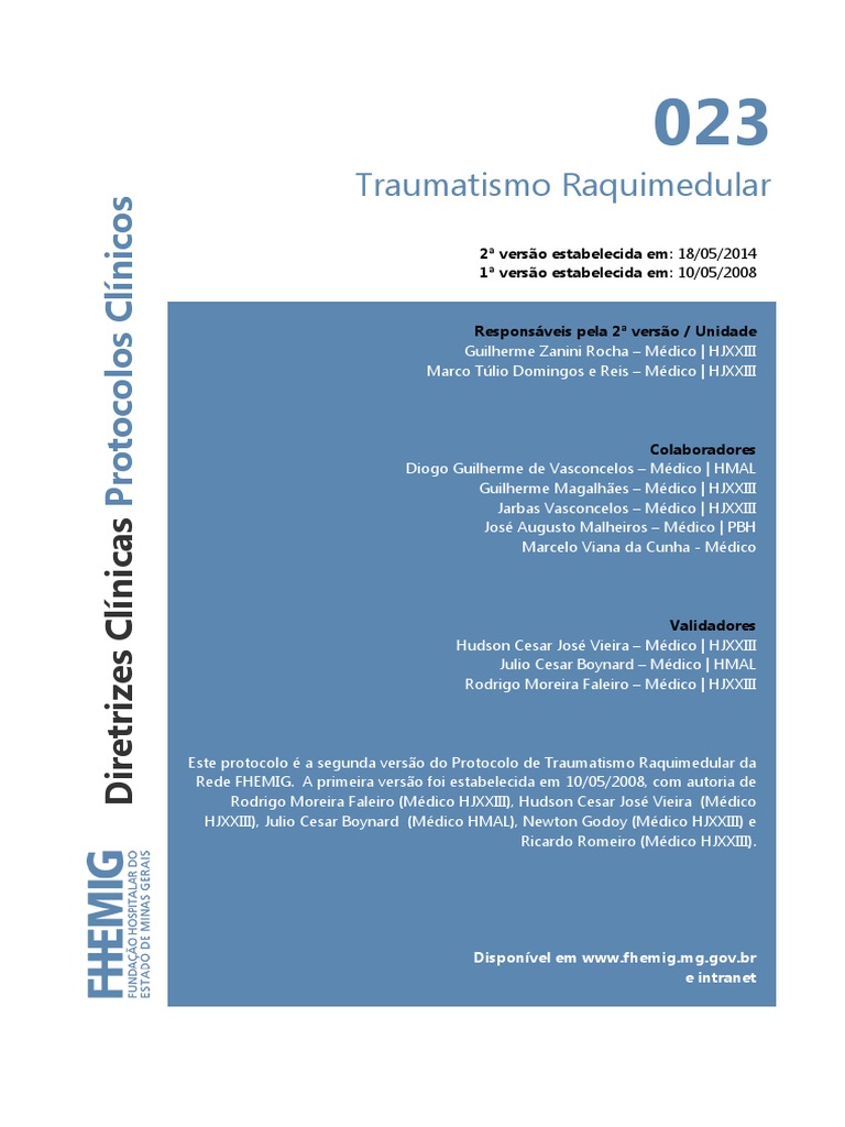 O traumatismo raquimedular (TRM) uma patologia de alto custo social, hospitalar e familiar. As