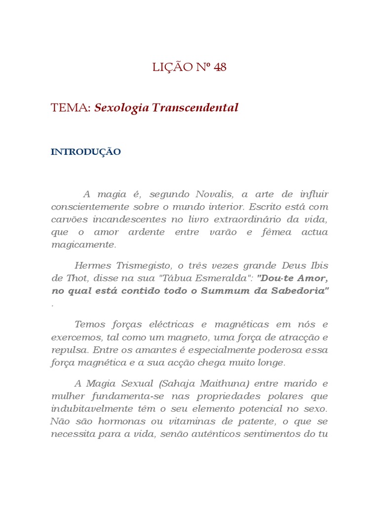 TEMA: Sexologia Transcendental