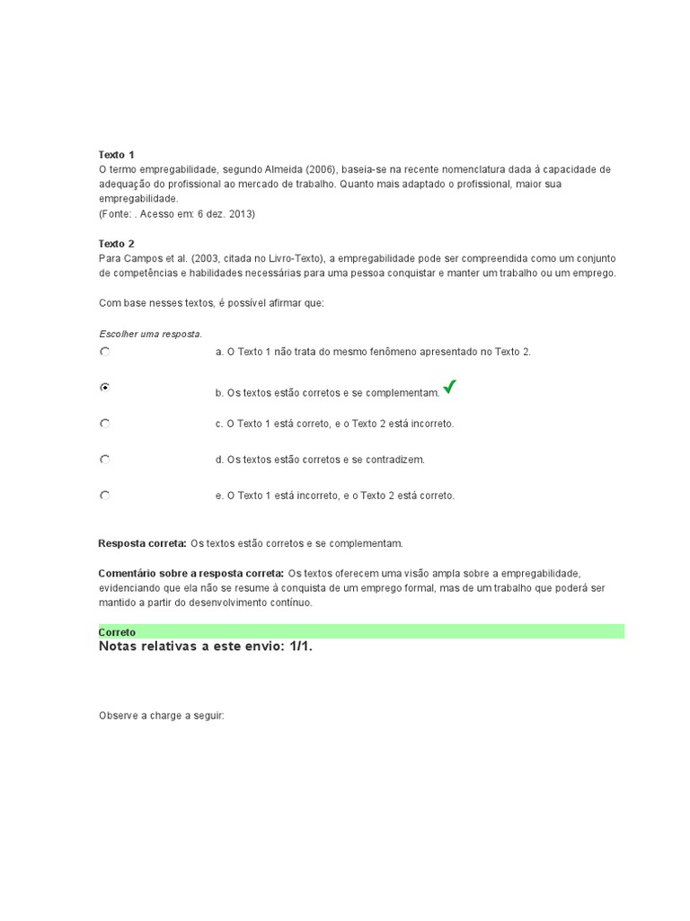 Comentrio sobre a resposta correta: Os textos oferecem uma viso ampla sobre a empregabilidade,